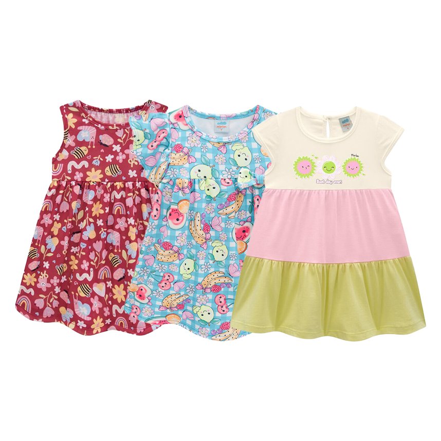 Confeccionados com tecidos macios e respiráveis, os vestidos têm modelagem confortável, fácil de vestir e pensada para garantir liberdade nos movimentos. As estampas são alegres, femininas e cheias de ternura, como a sua pequena merece.